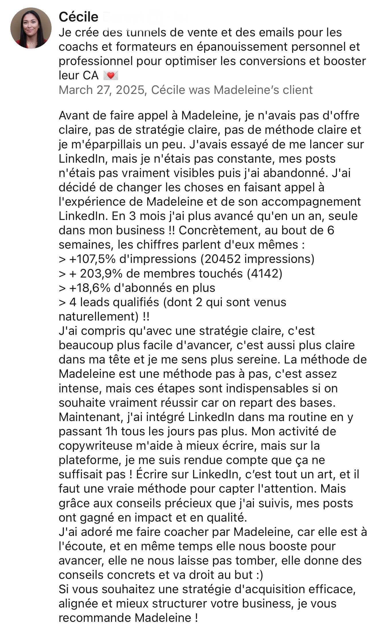Tu ne sais pas comment structurer ou améliorer ta communication pour attirer ton client idéal notamment sur LinkedIn